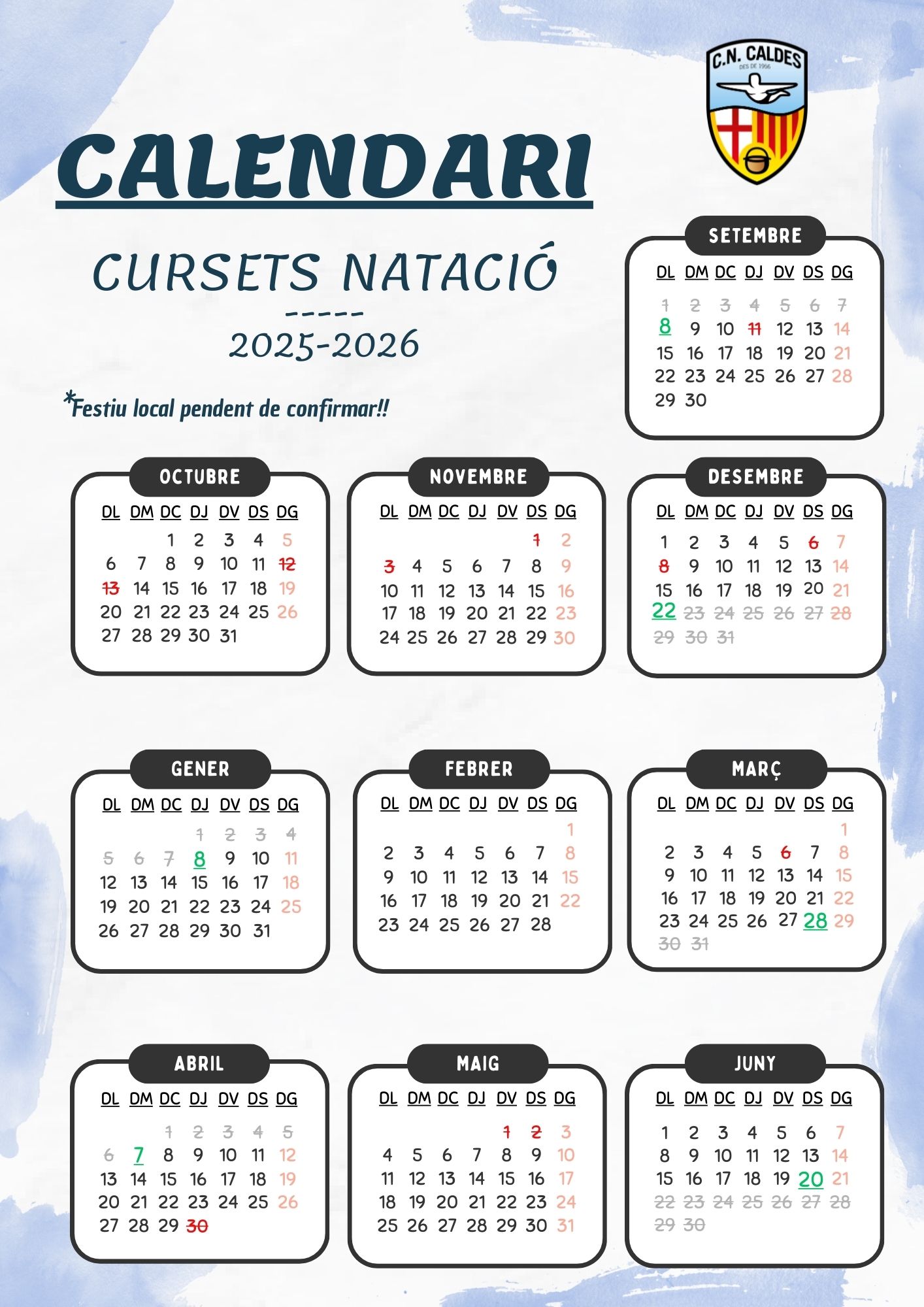 Les inscripcions preferents s'han de fer a la recepció del club o per e-mail. (particularsnatacio@cncaldes.cat)